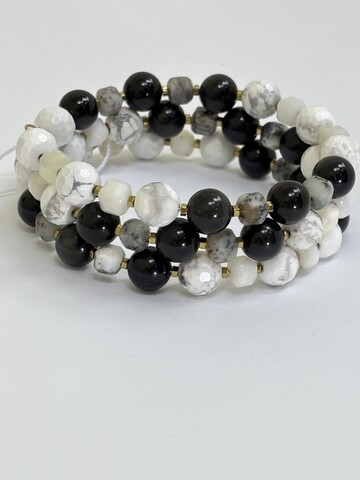 Индивидуально собранный браслет из натурального серебристого обсидиана и бижутерных элементов, Браслет на мемори прекрасно держит форму.