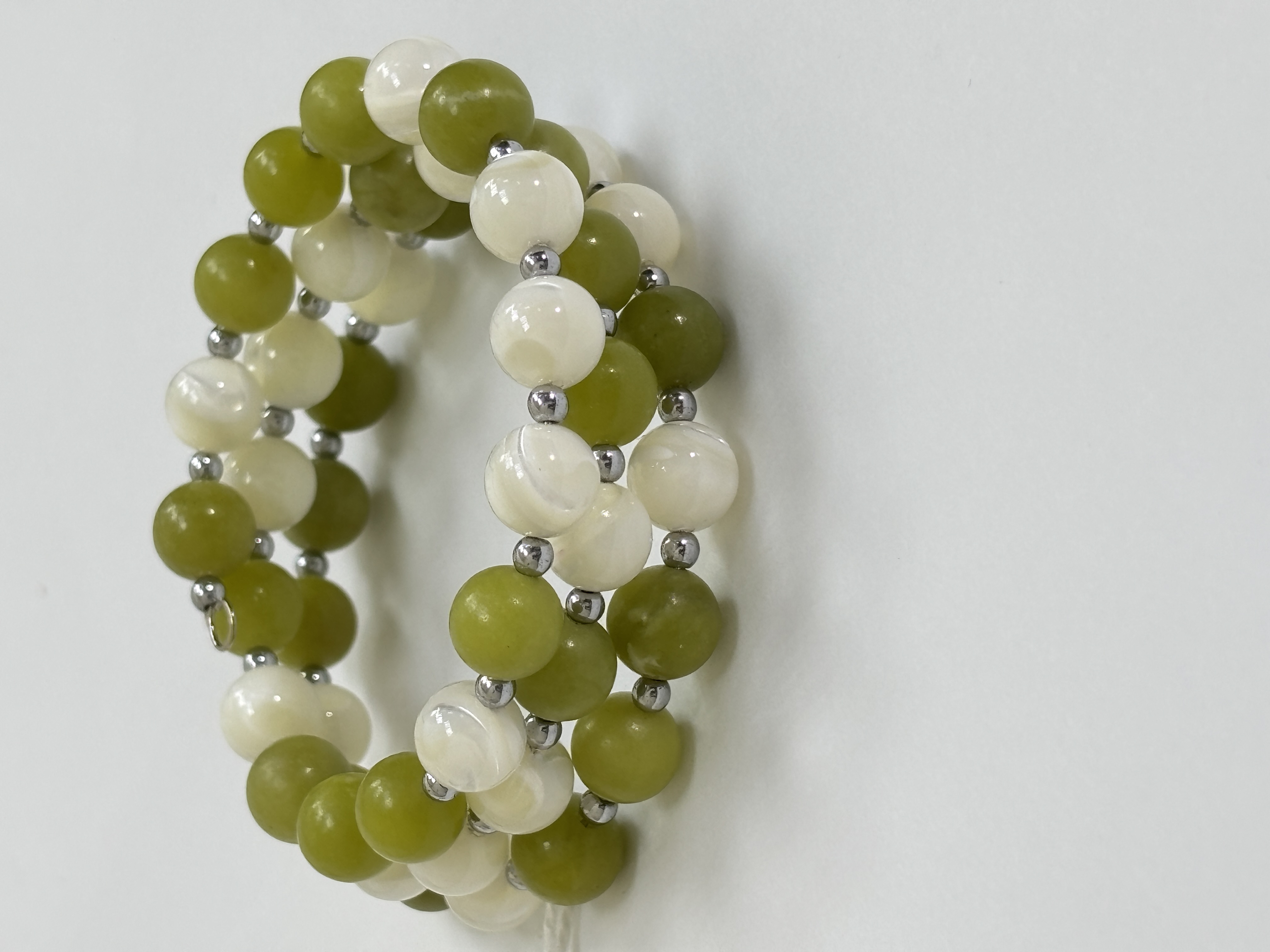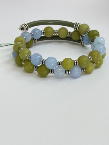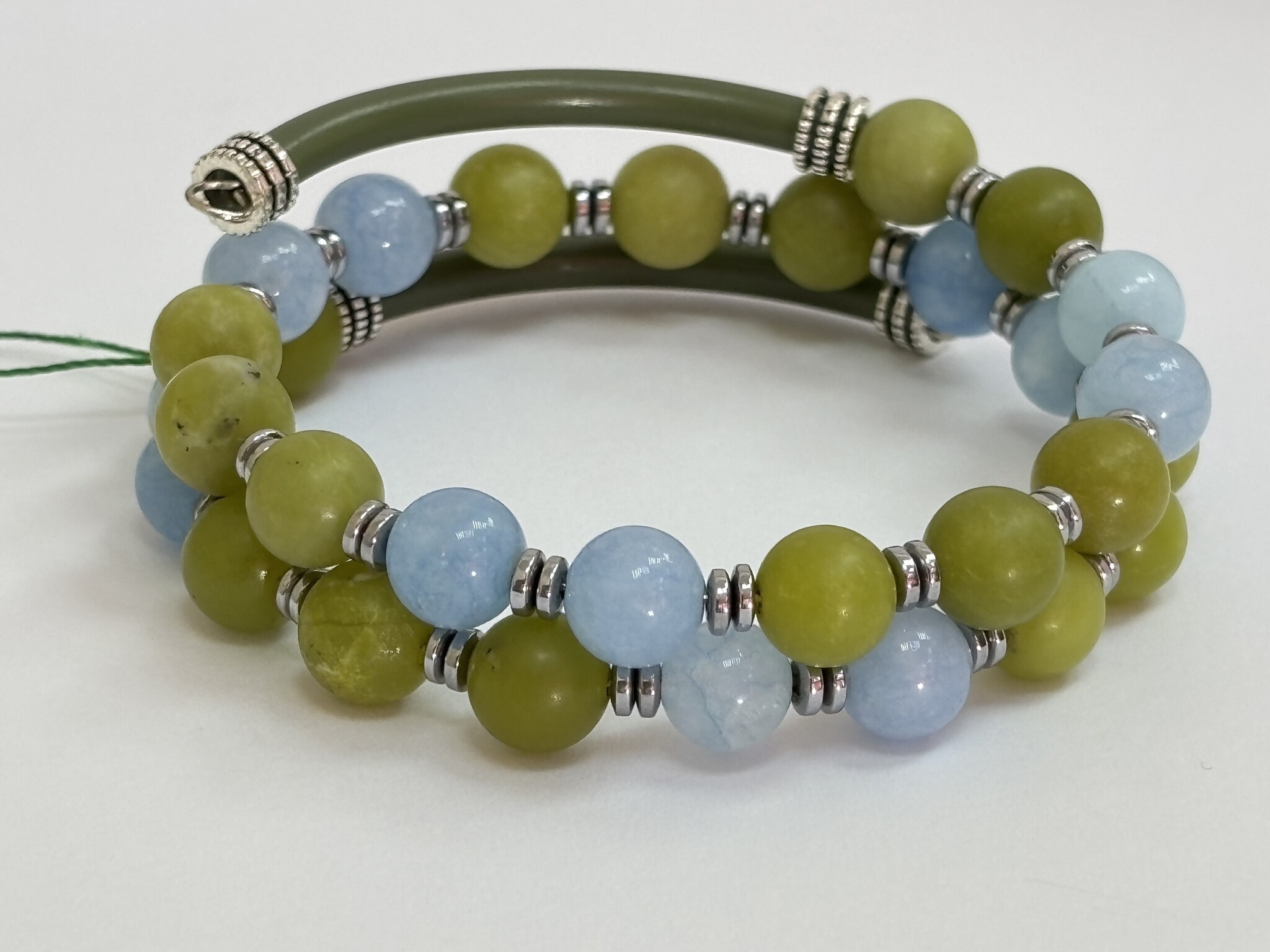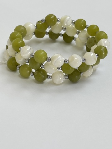 Индивидуально собранный браслет из натурального жадеита и бижутерных элементов, Браслет на мемори прекрасно держит форму.