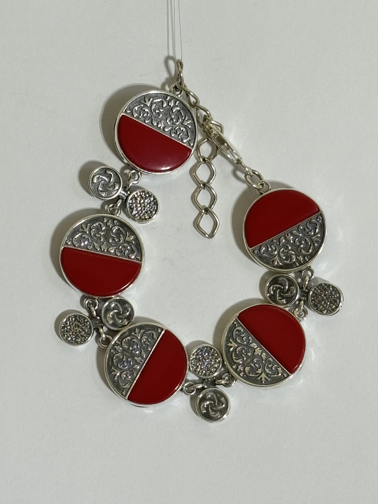 Браслет из натуральных камней в текстурном серебре с славянскими оберегами.