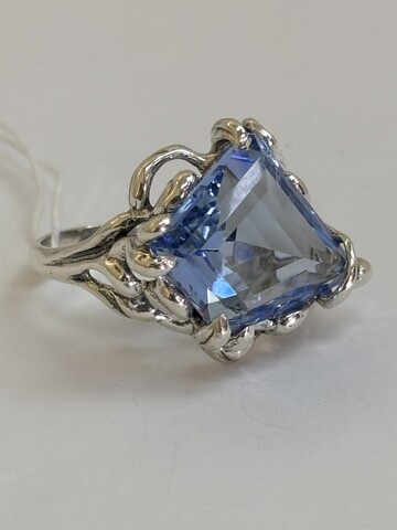 Асимметричный граненый камень в серебряной ажурной оправе.