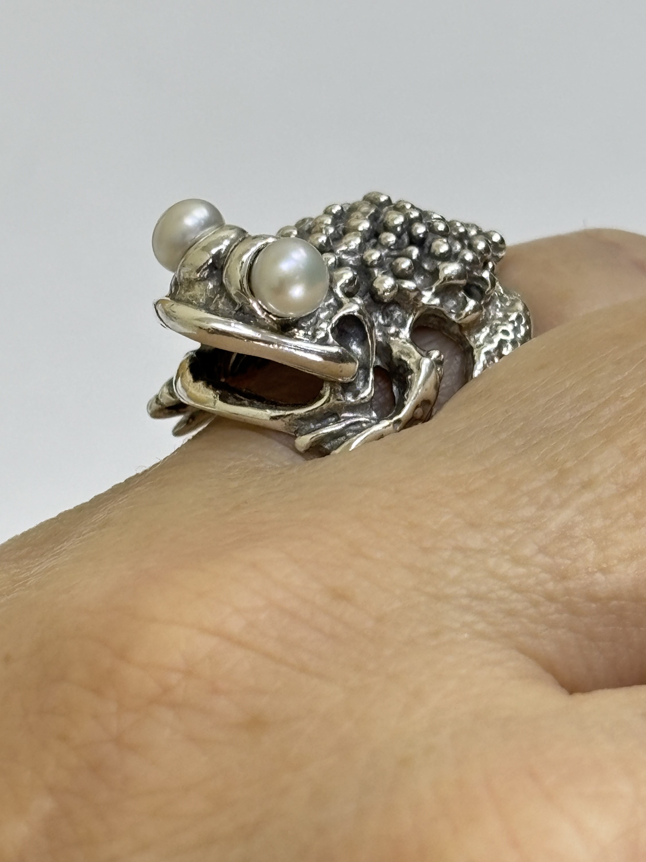 Может быть с помощью этой жабы можно стать царевной -лягушкой. Экставагантное колечко нужно заказывать на пол размера меньше. К кольцу есть подвес.