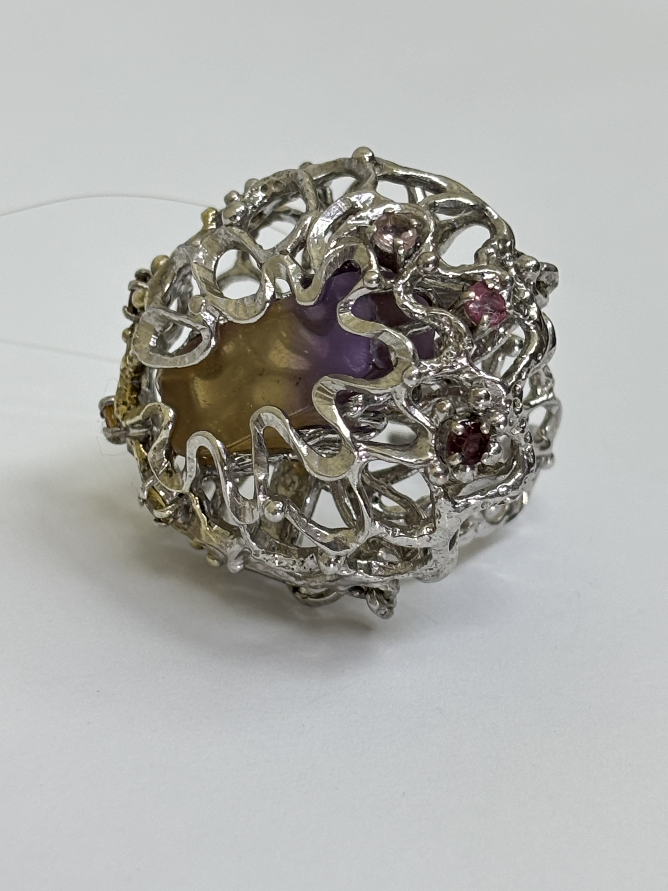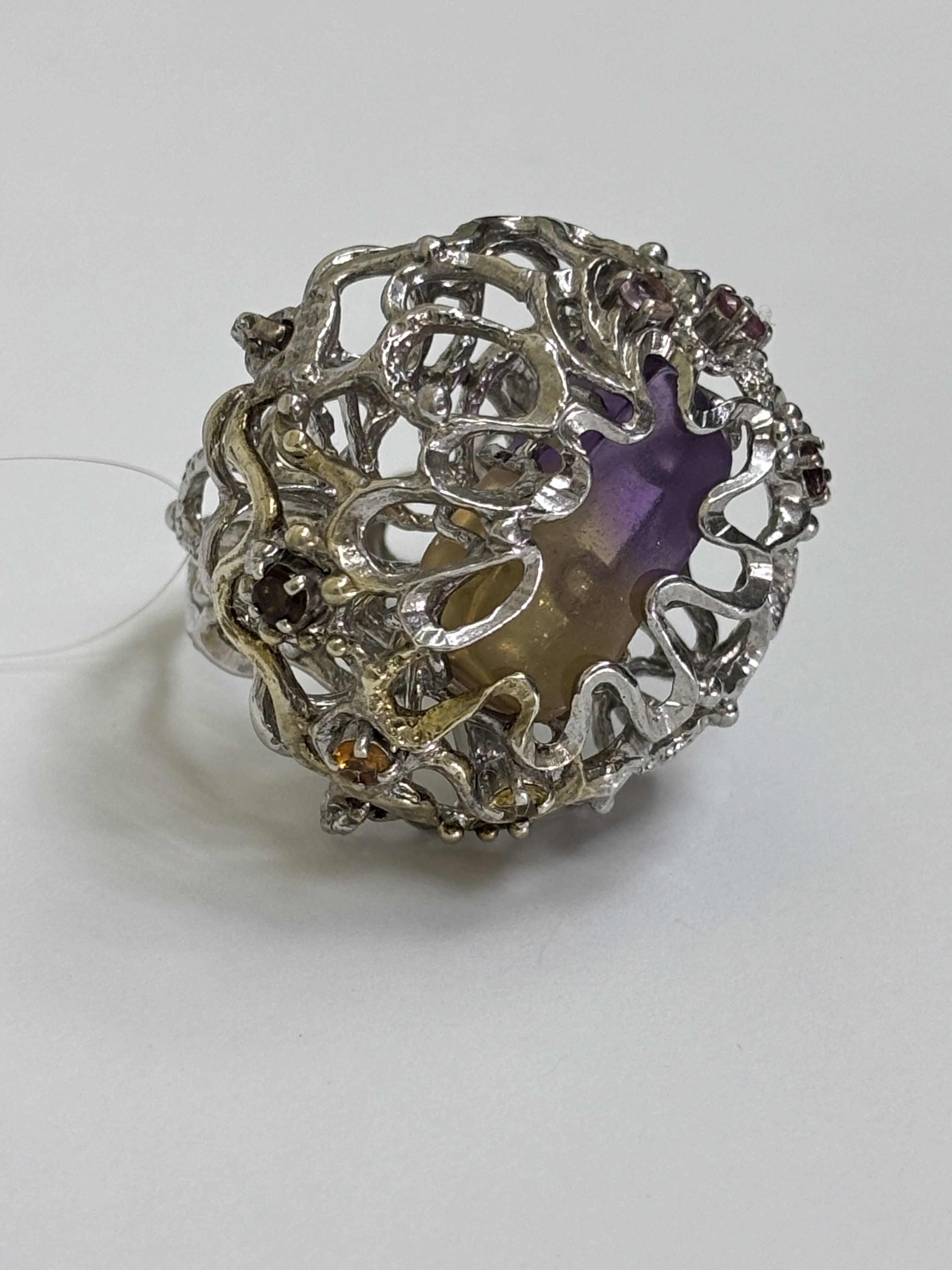 Авторская работа заключила аметрин в фантазию из серебра.