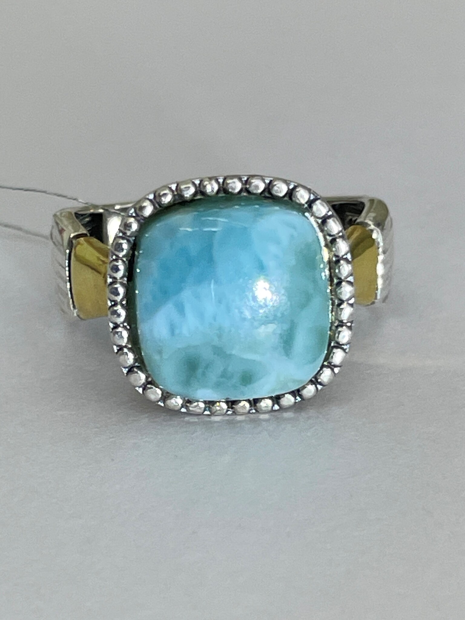 Серебряное, с позолоченными элементами, кольцо с натуральным камнем и текстурным серебром.