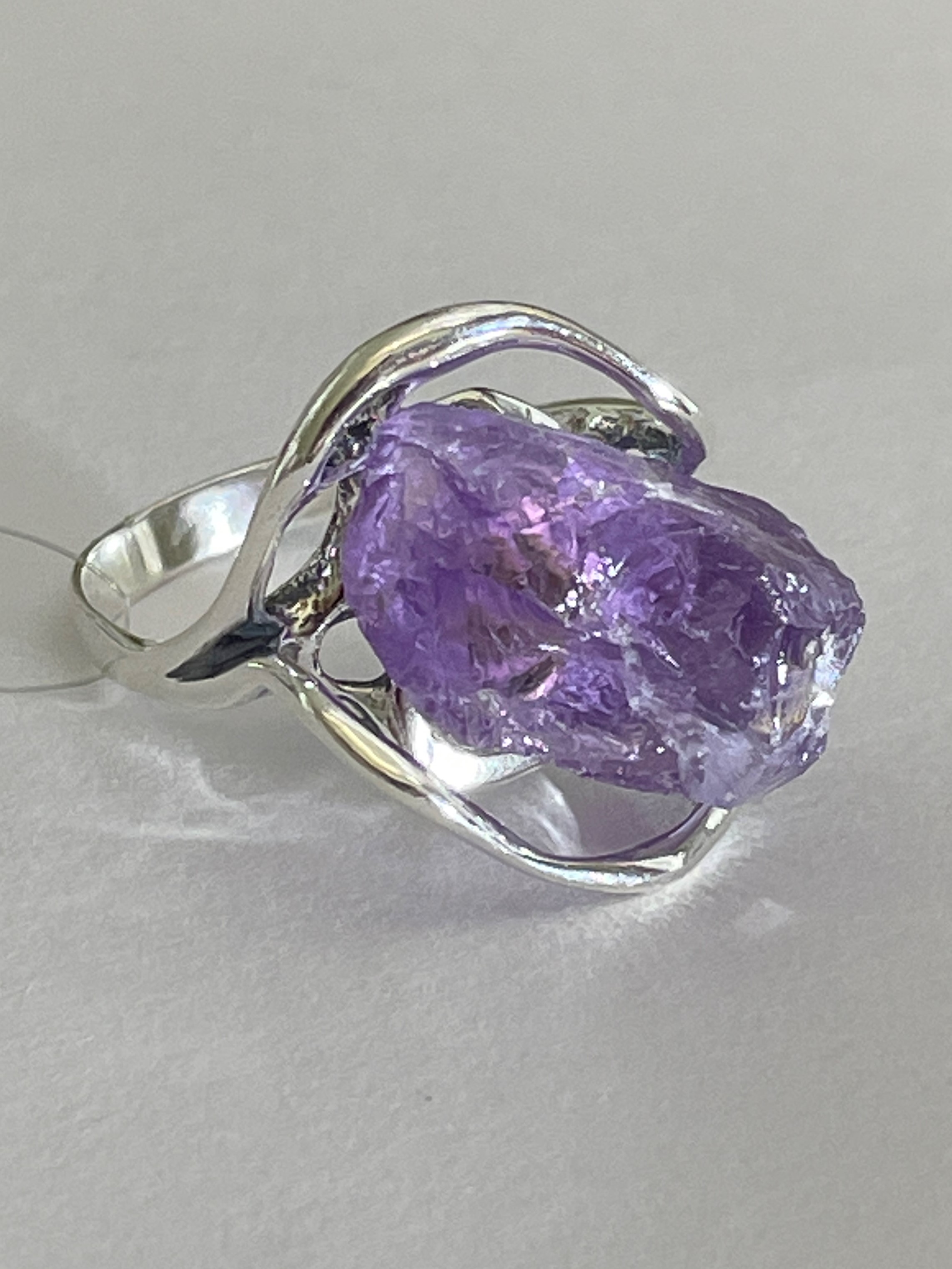 Природную красоту натурального камня подчеркивает свободная серебряная оправа.