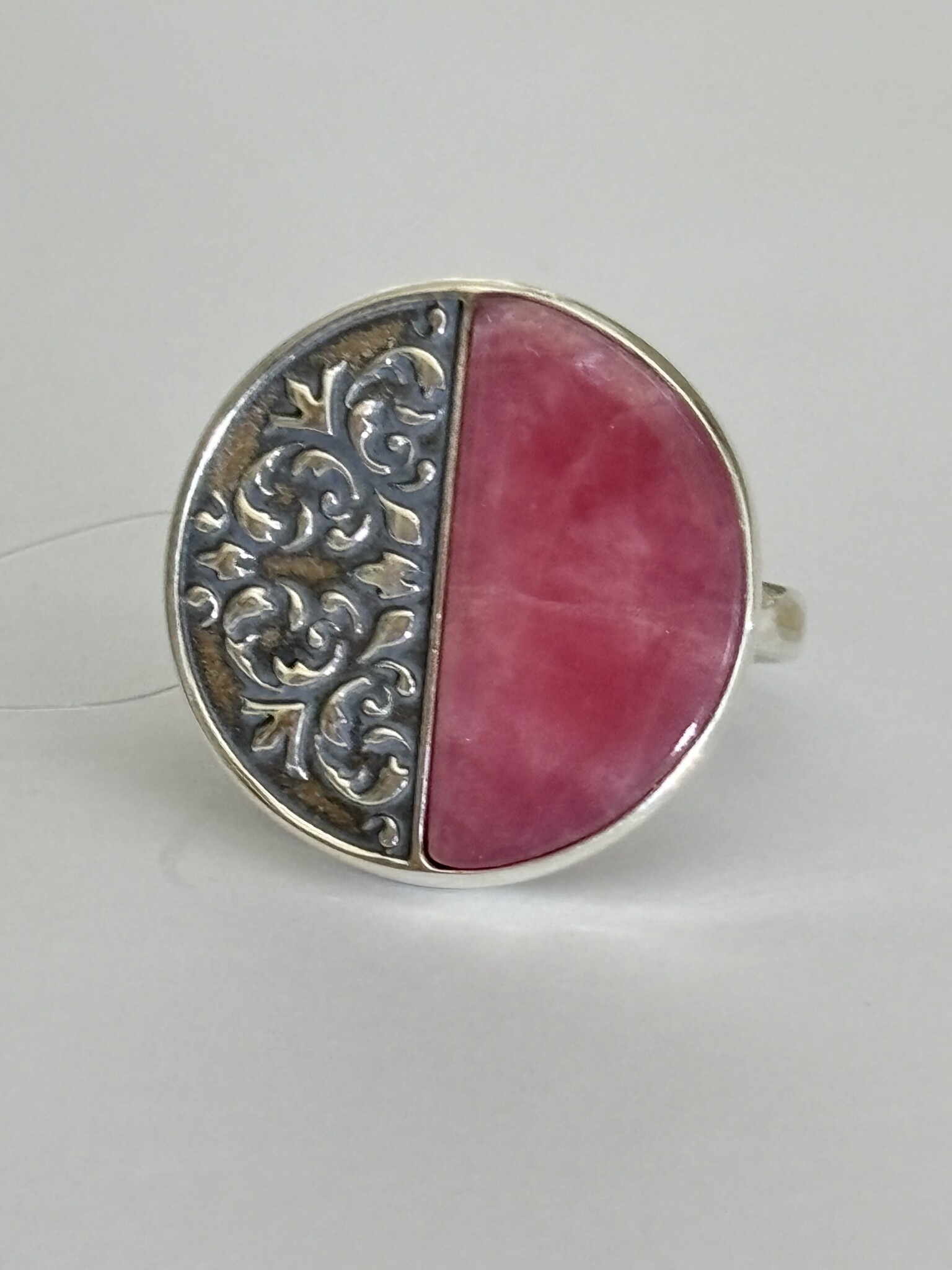 Кольцо с натуральным кабошоном в эффектном серебряном убранстве.
