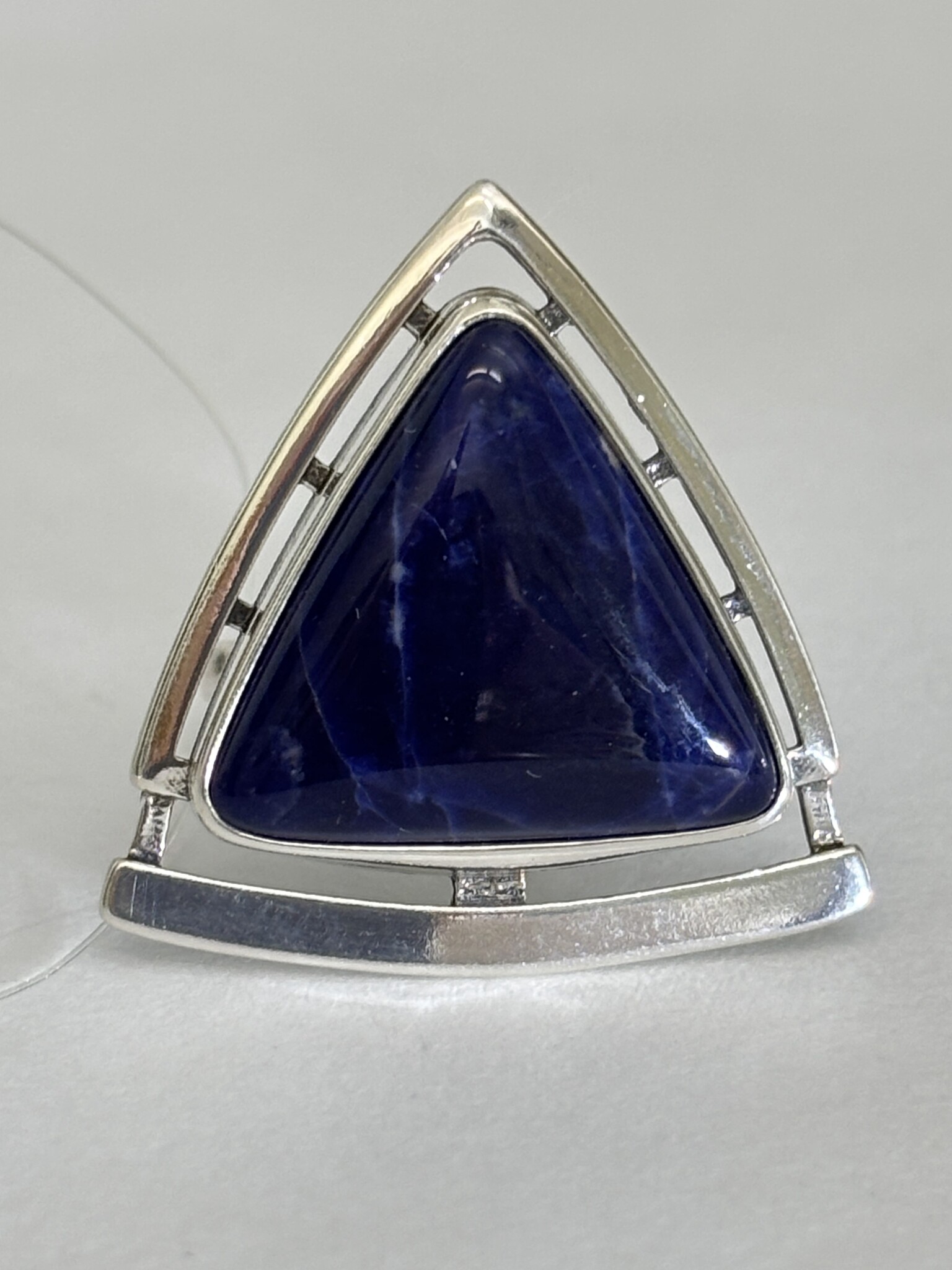 Треугольное кольцо в геометрическом дизайне и гладком серебре с натуральным камнем станут финишной точкой стильного образа.