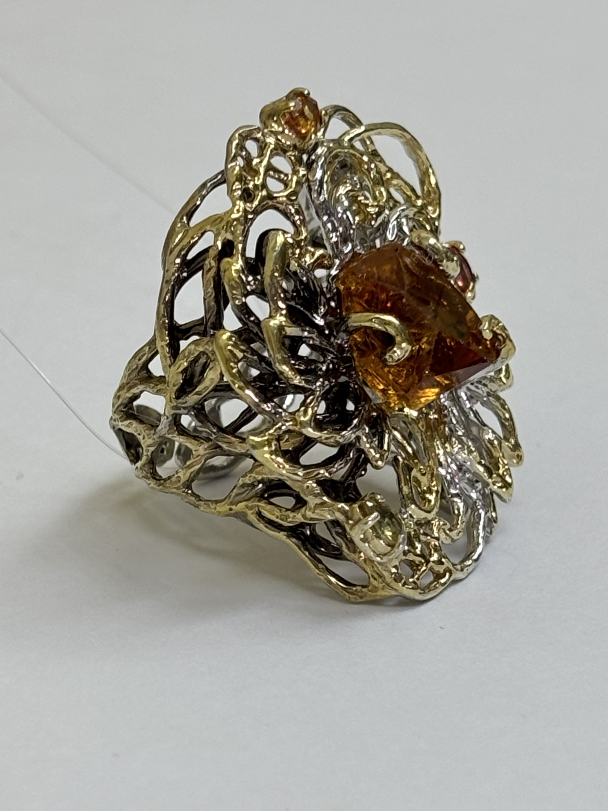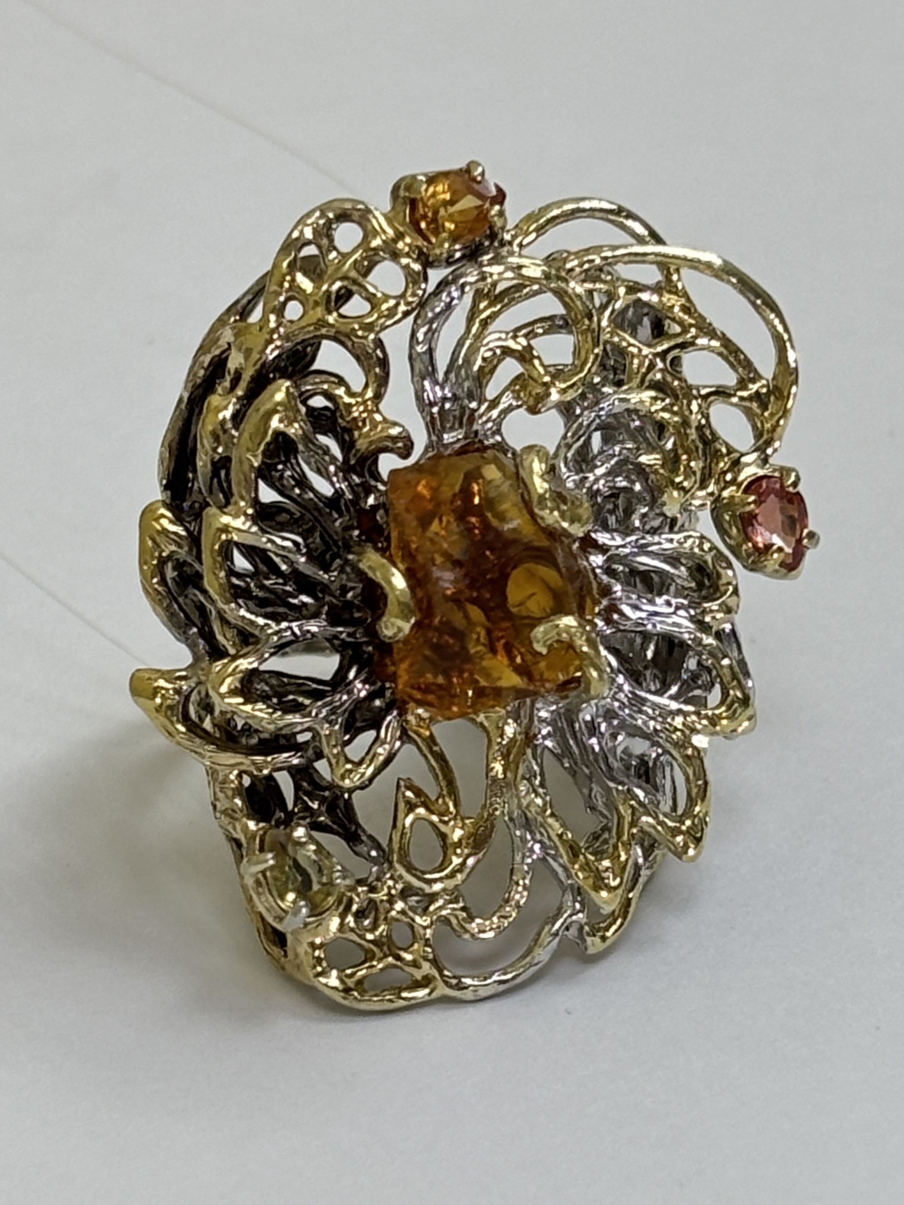 Авторская работа заключила друзу цитрина в фантазию из серебра с позолотой.