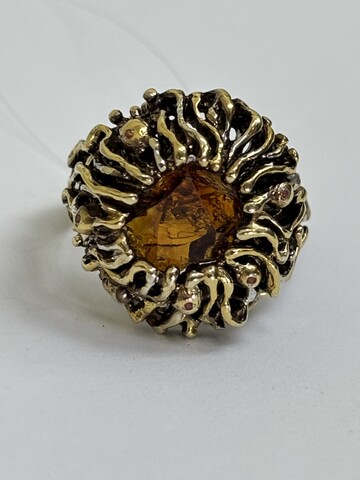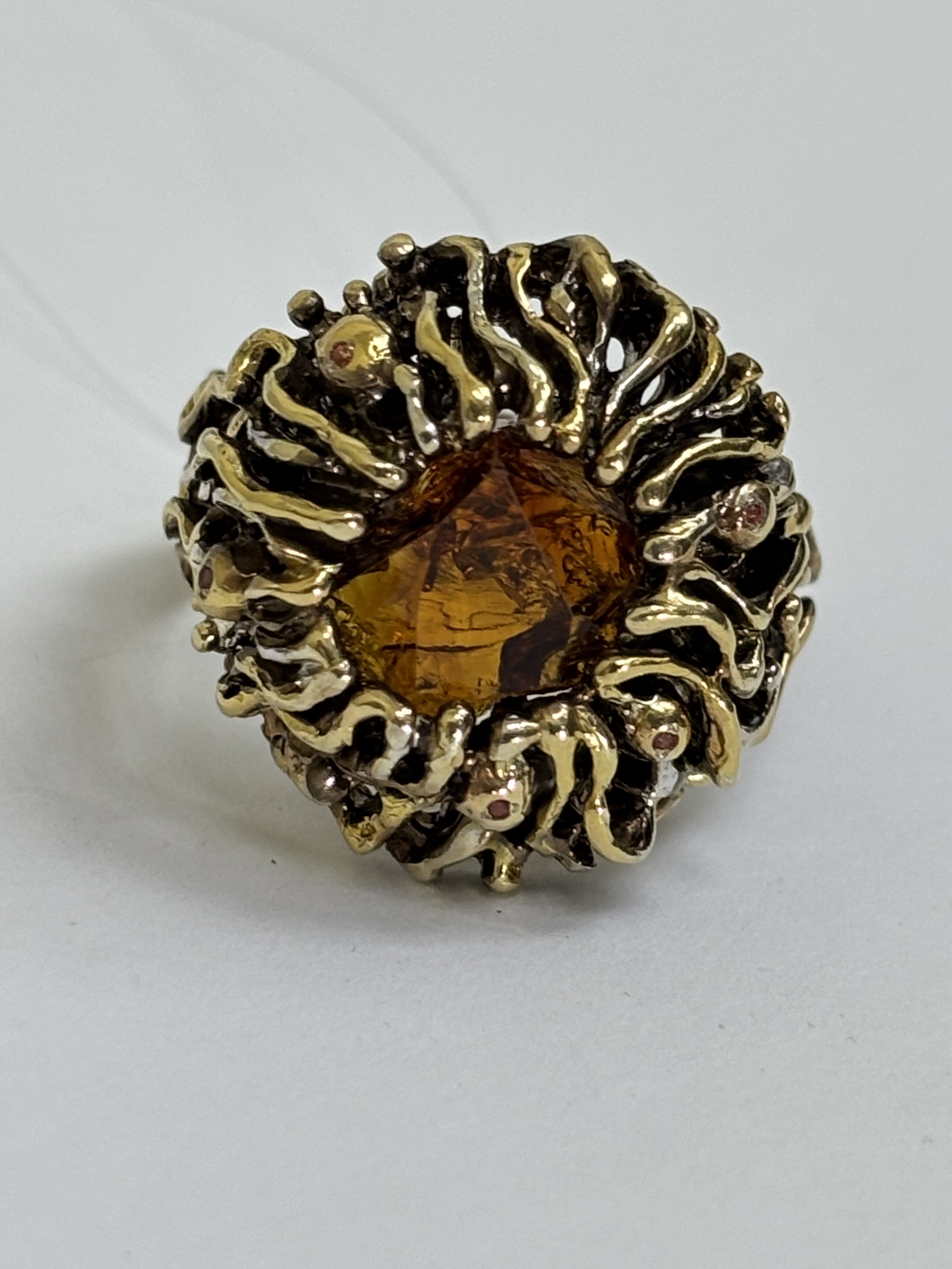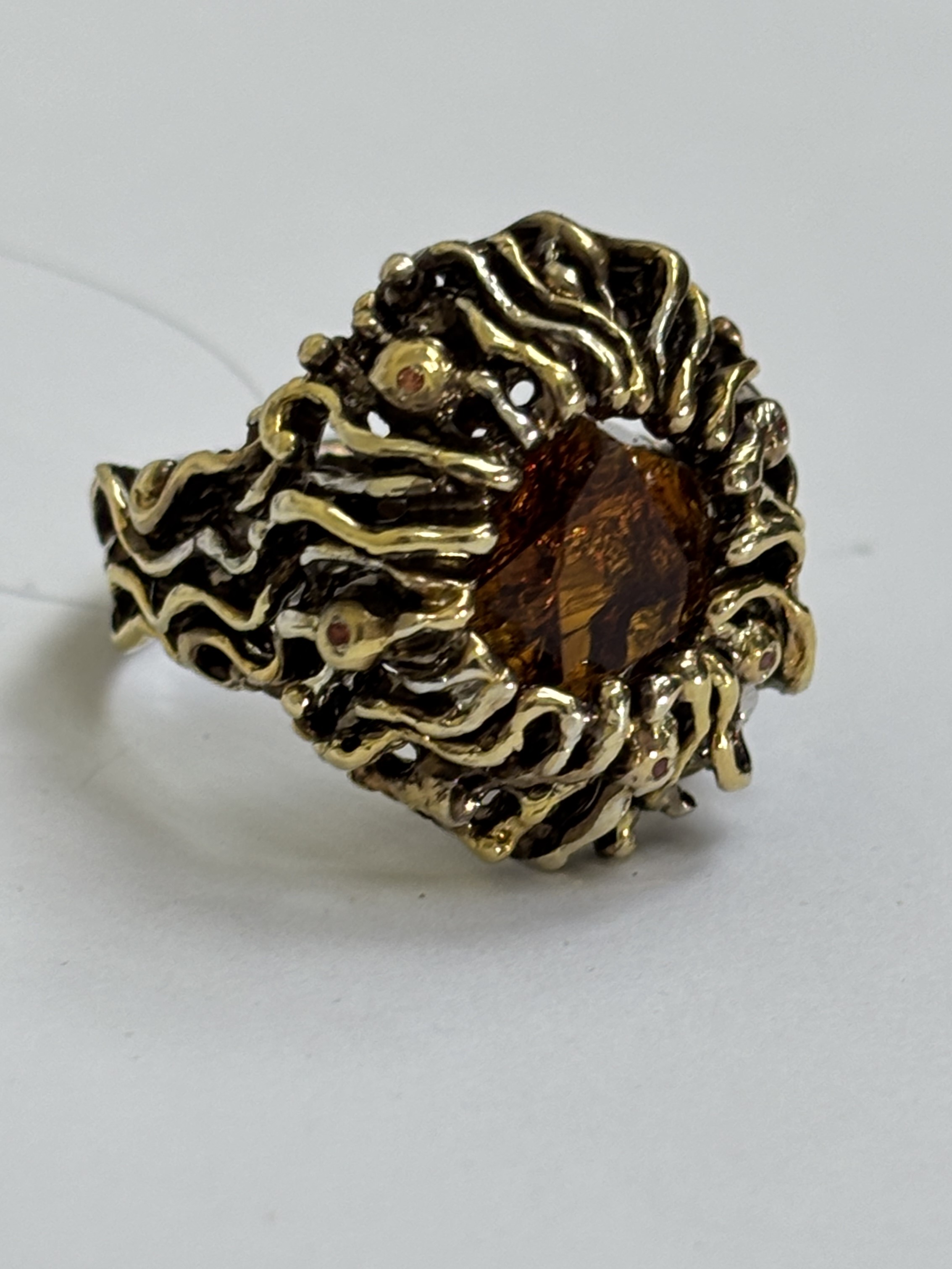 Авторская работа заключила Цитрин-Мадейра в фантазию из серебра с позолотой.