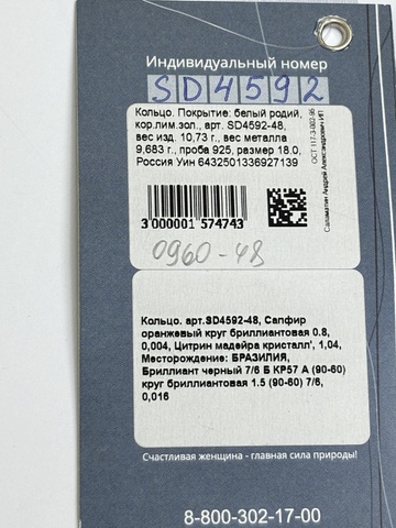 Цитрин-Мадейра (кольцо из серебра)