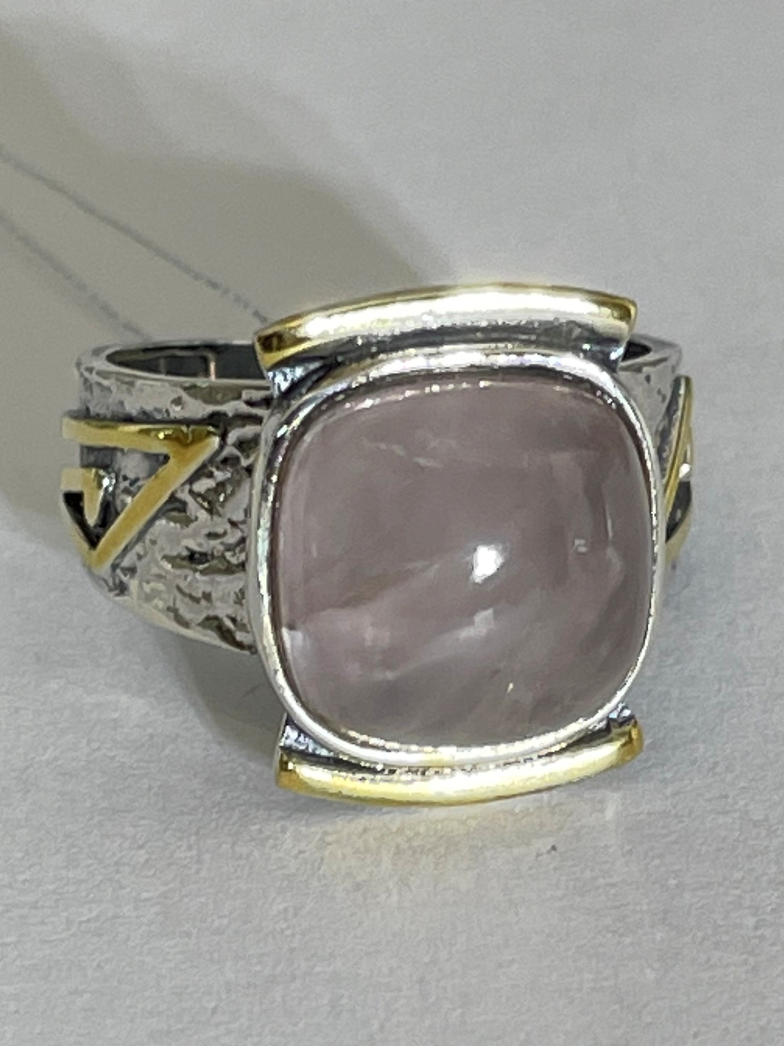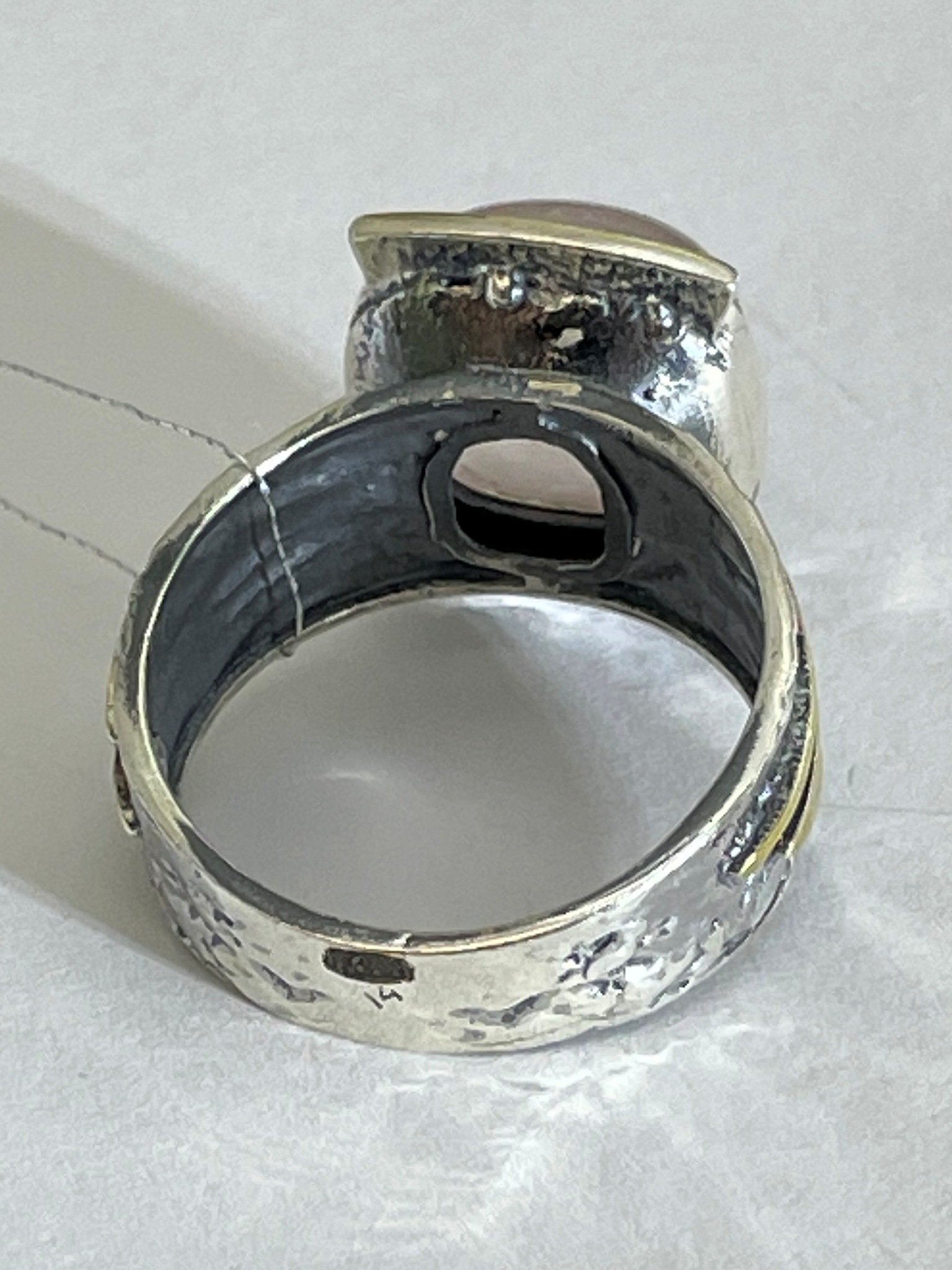 Серебряное, с позолоченными элементами, кольцо с натуральным камнем и текстурным серебром.
