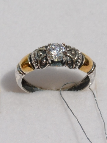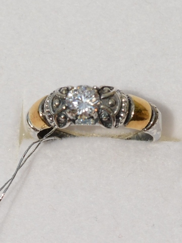 Серебряное, немного винтажное кольцо, с позолоченными элементами, орнаментом..