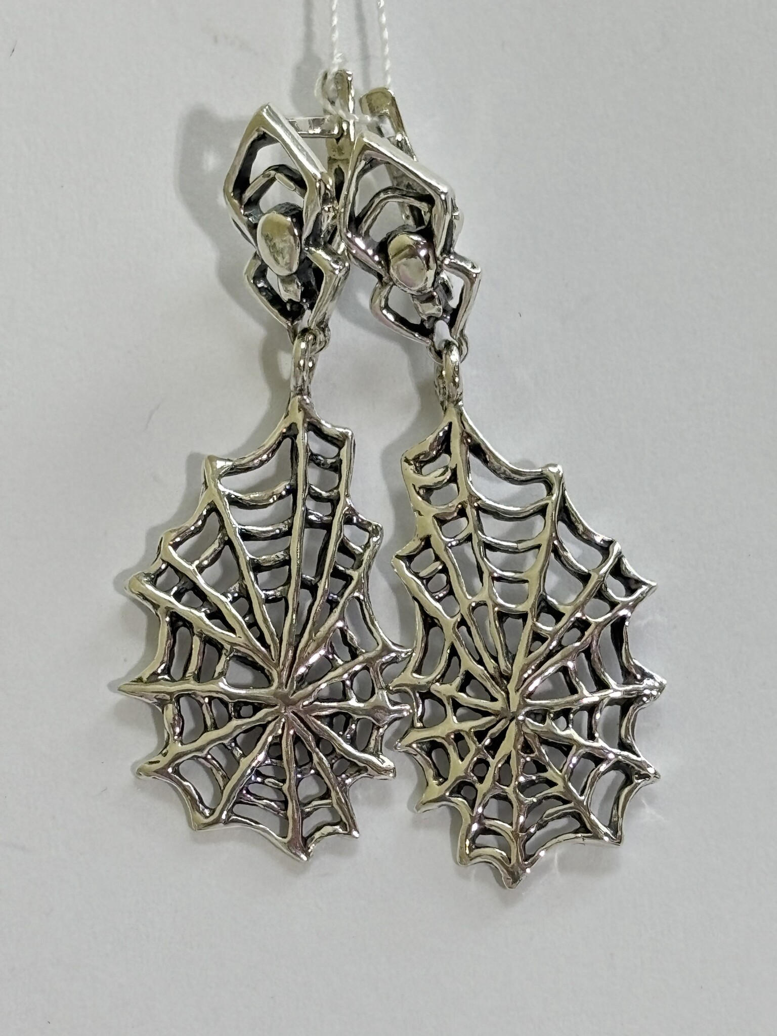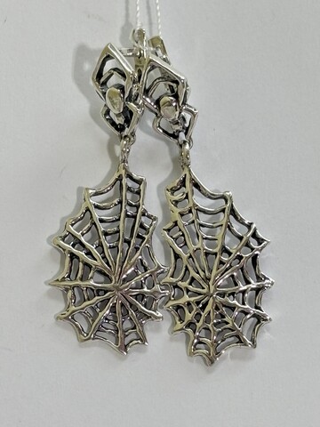 Фактурная серебряная паутина в динных серьгах с подвеской.