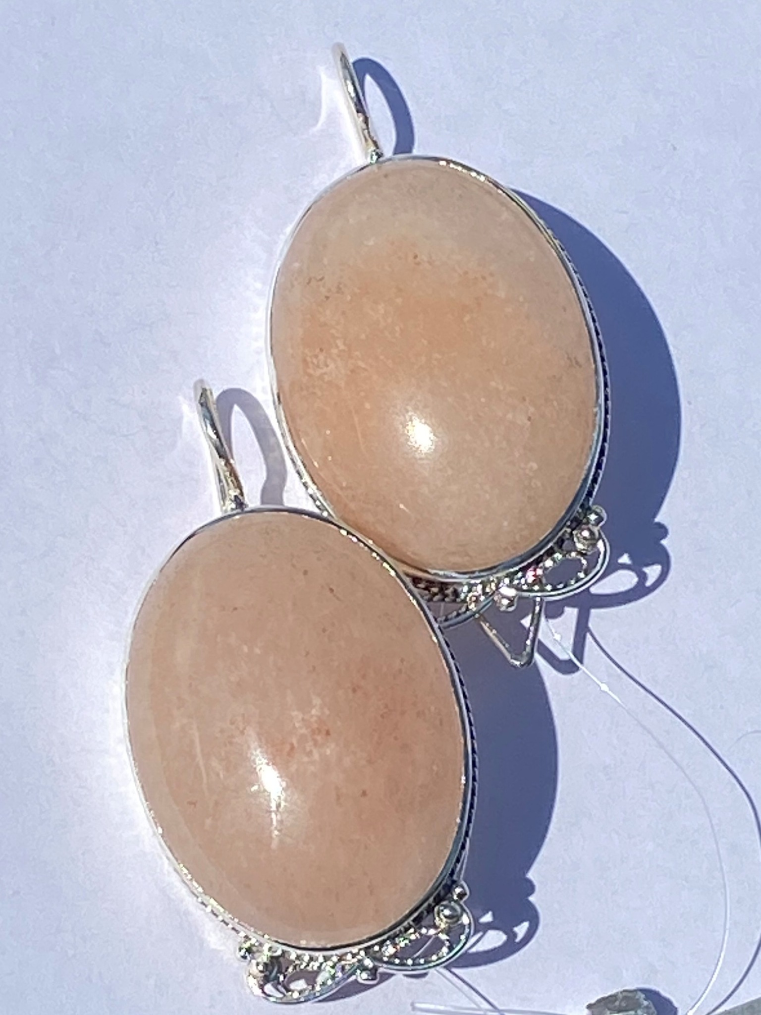Коллекционный розовый опал в резной серебряной оправе.