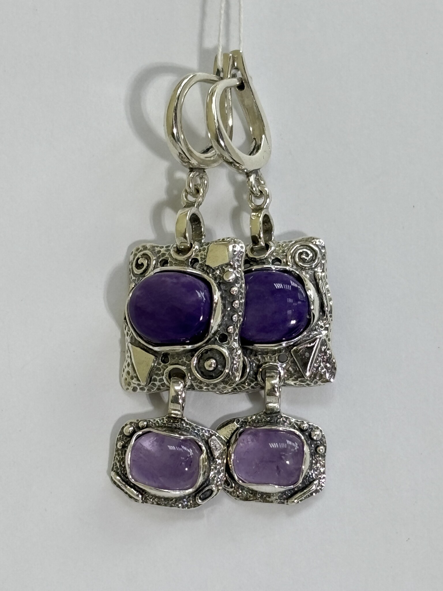 Серьги в стиле БОХО с этническими элементами по серебру и двумя натуральными камнями.