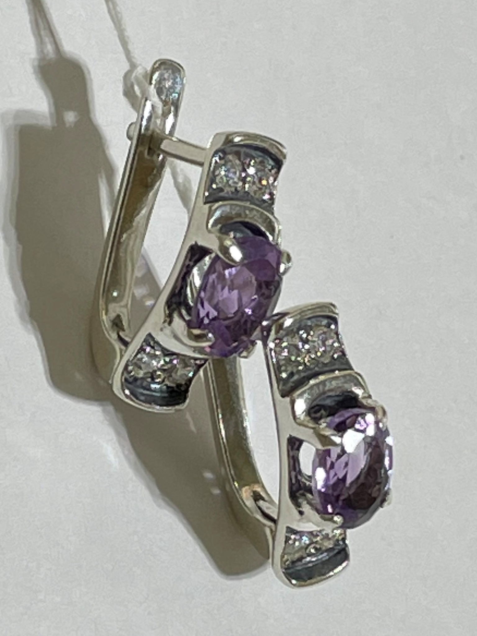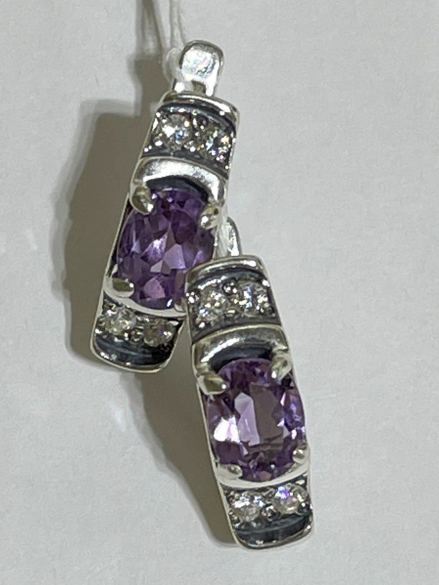 Натуральный аметист/топаз/гранат оправлен серебром и фианитами.