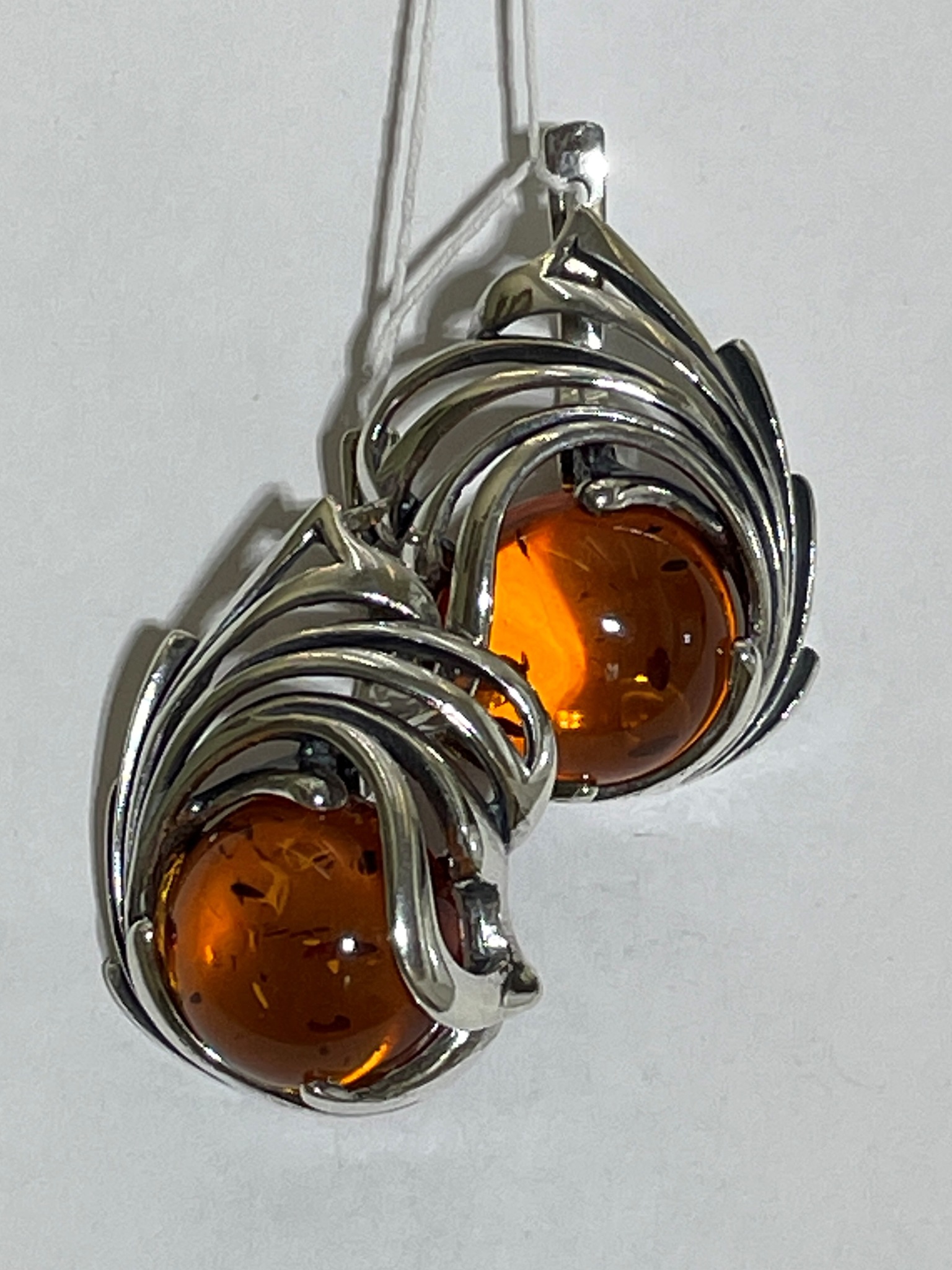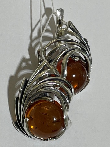 Кабошон из прессованного янтаря в серебряном узоре.