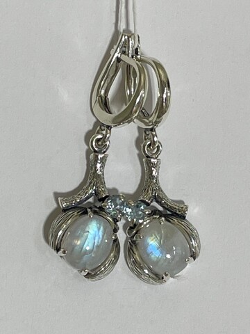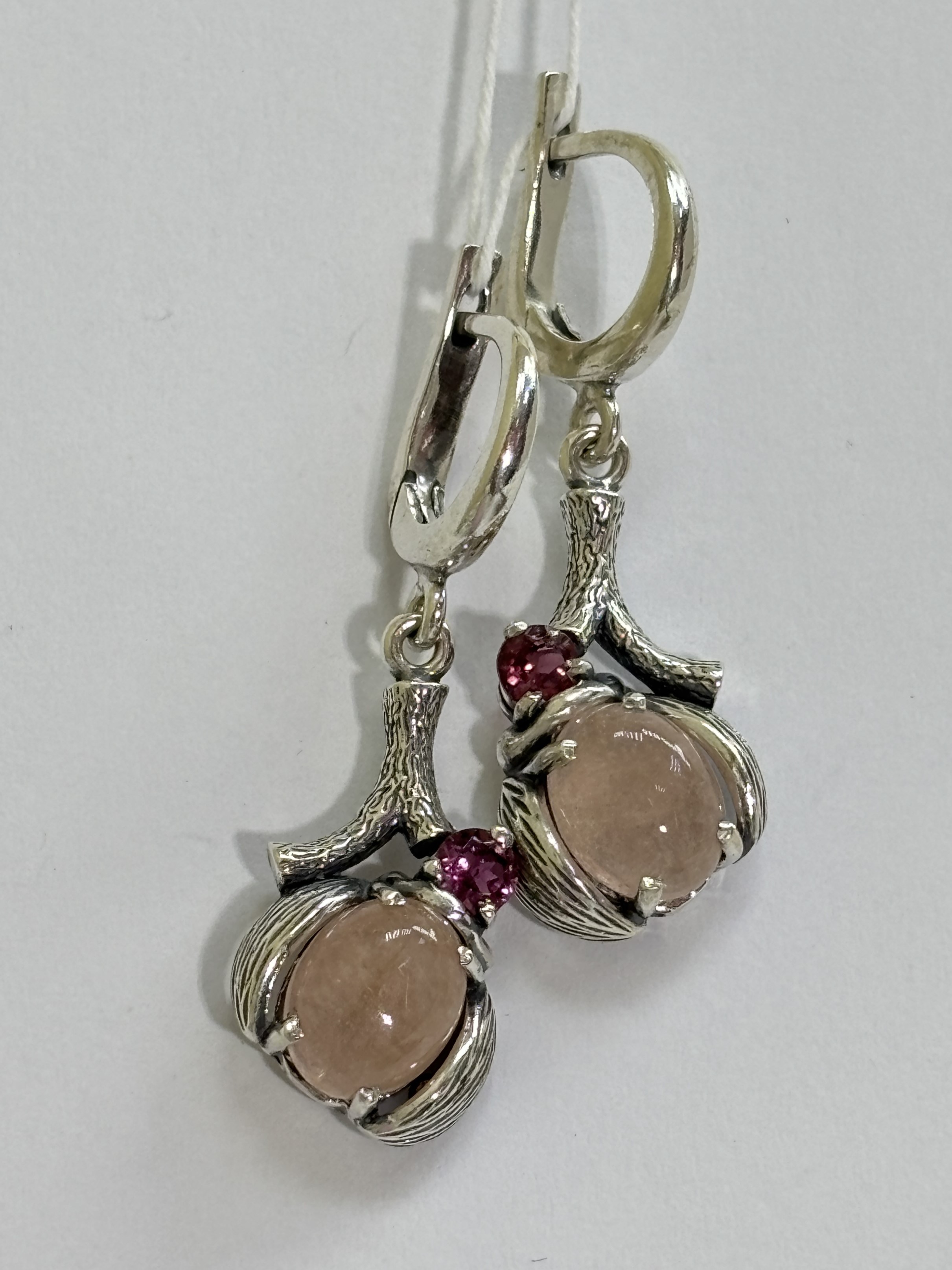 Серебряный светлячок,со спинкой из натурального самоцвета, примостился на веточке с натуралными камушками.