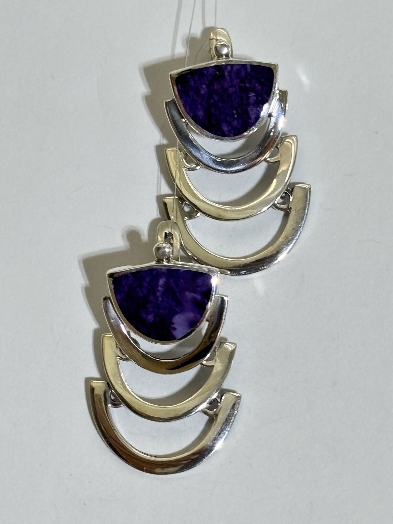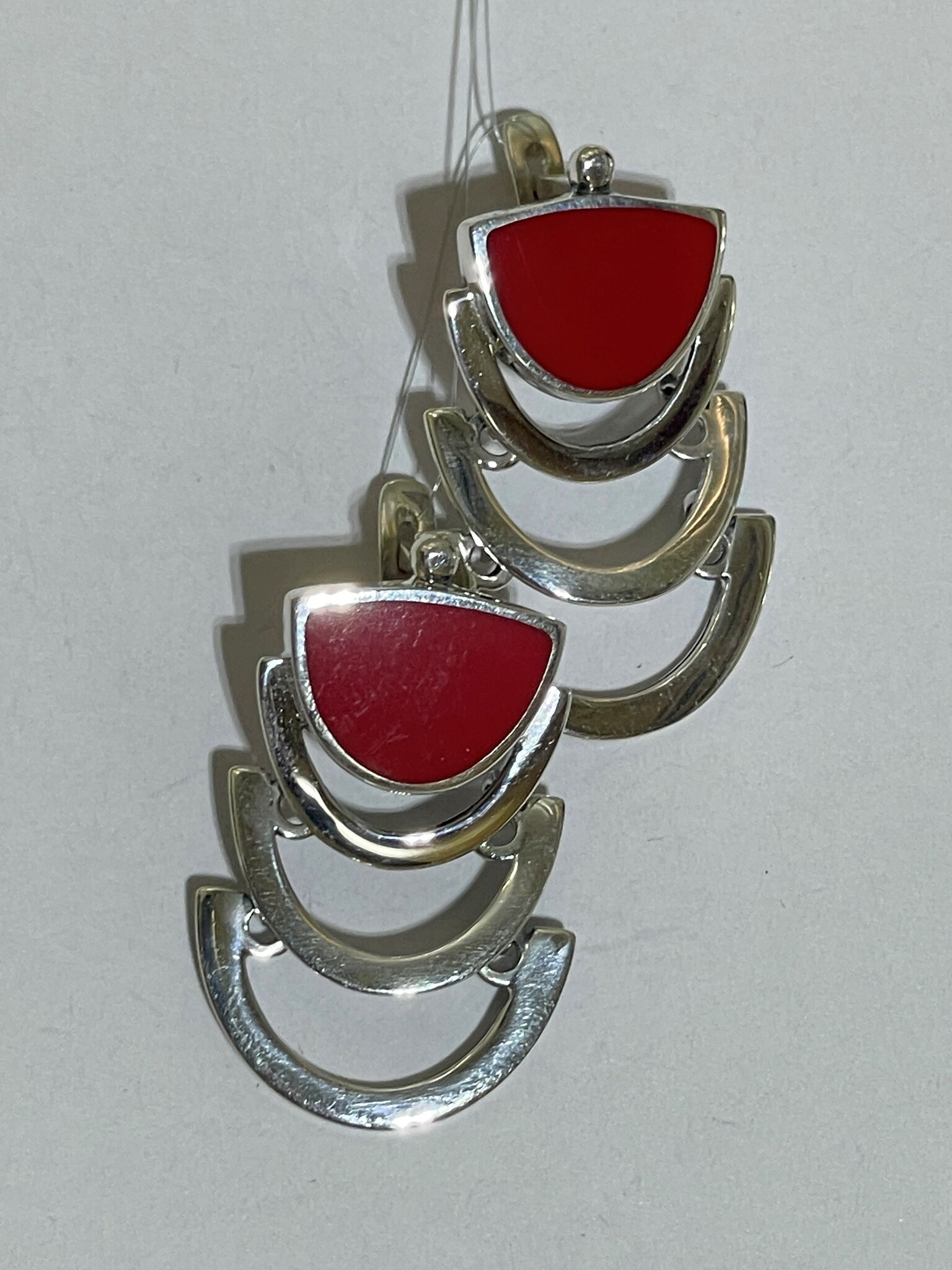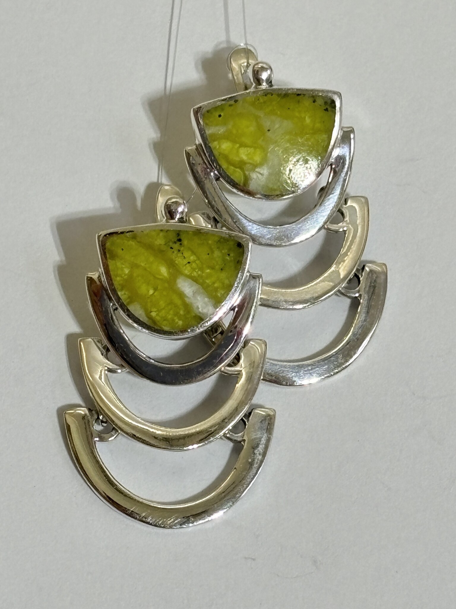 Длиные серьги с гладко отшлифованным камнем и плавными линиями из серебра.