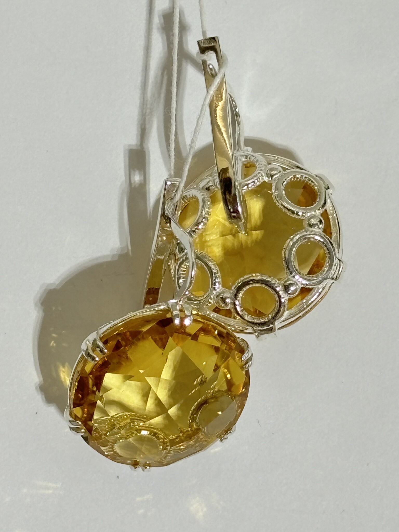 Крупный кварц, цвета цитрин, в резной серебряной оправе.