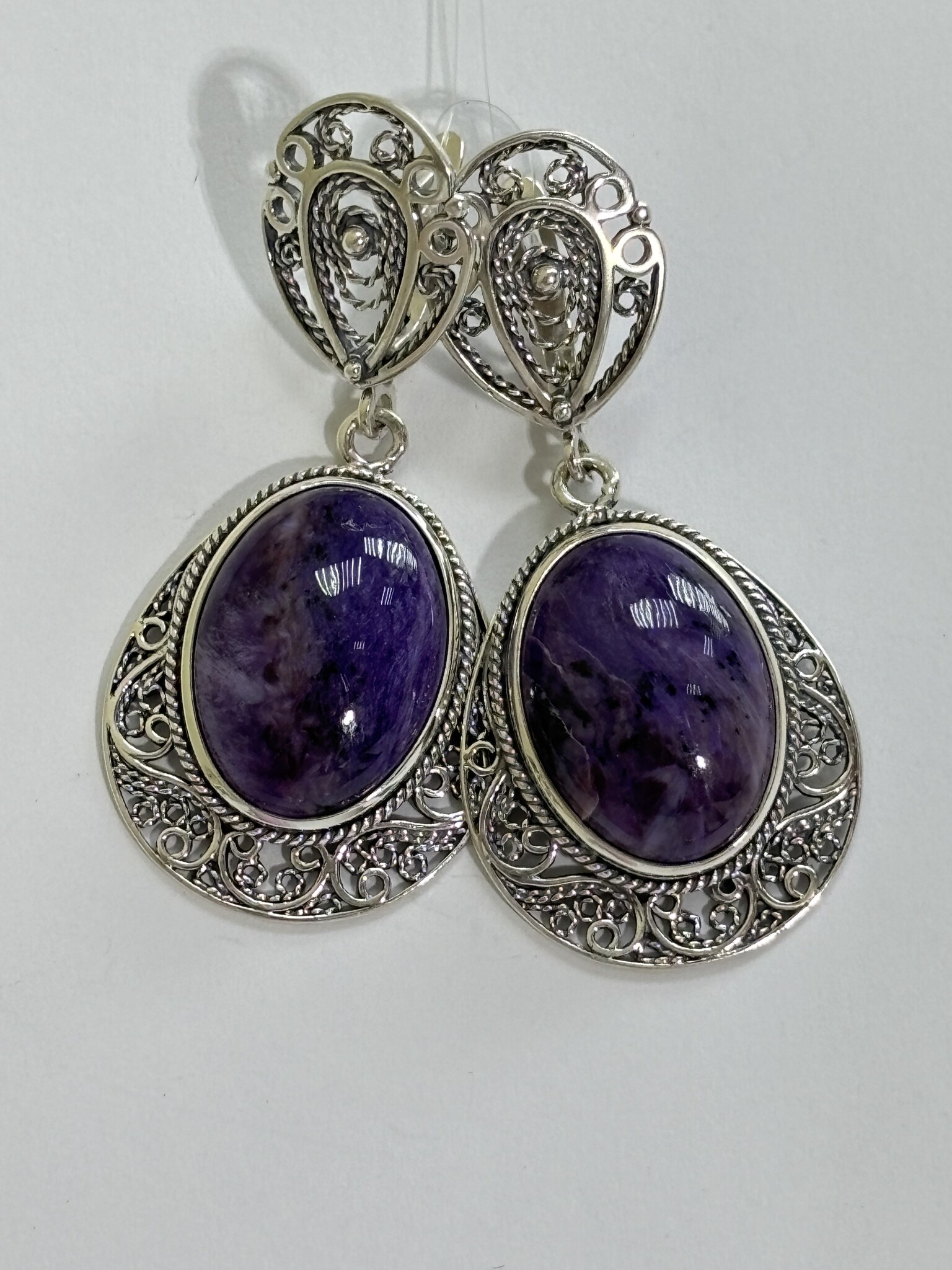 Крупный кахолонг овальной формы в филигранных серебряных завитках, действительно напоминает невесту. Достойный комплект для состоявшихся женщин.