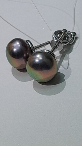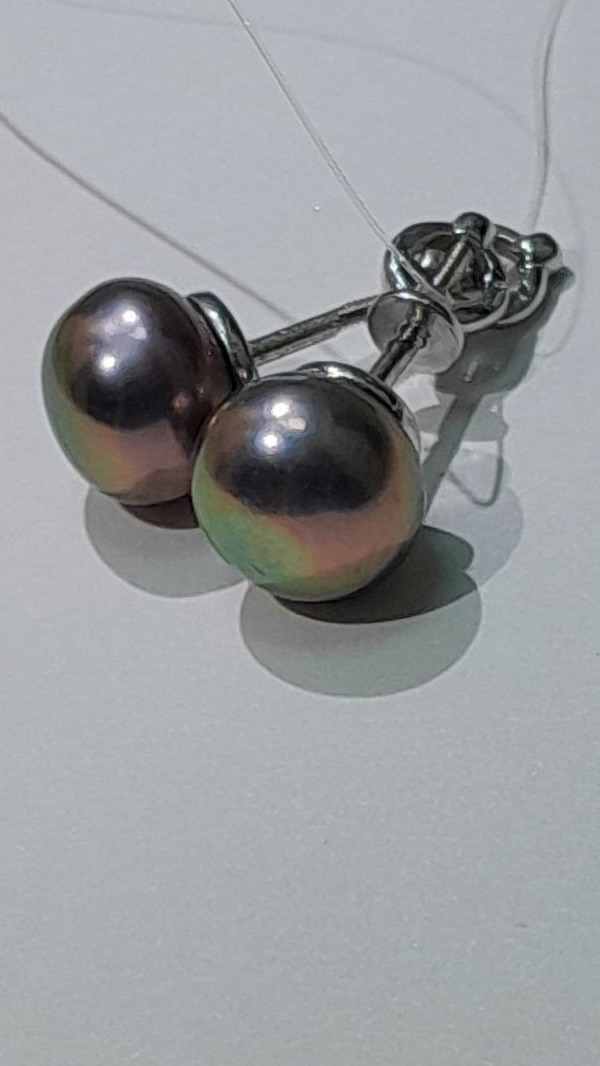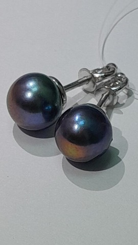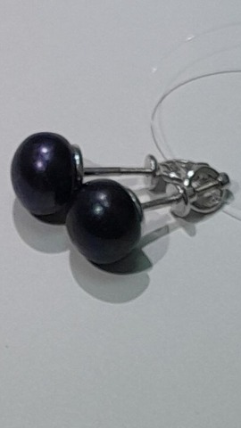 Серьги-пусеты,с темным жемчугом и лаконичным серебром..