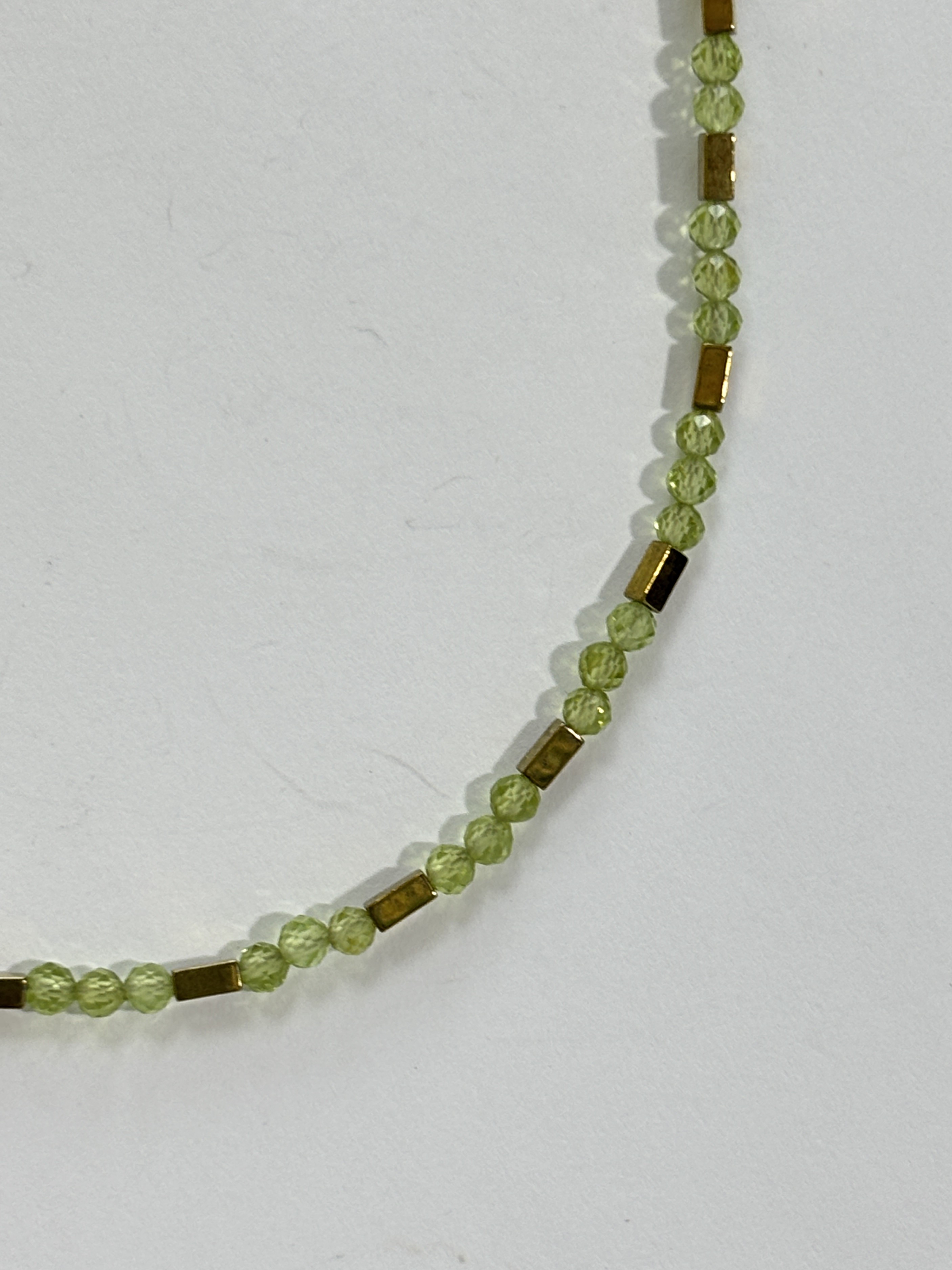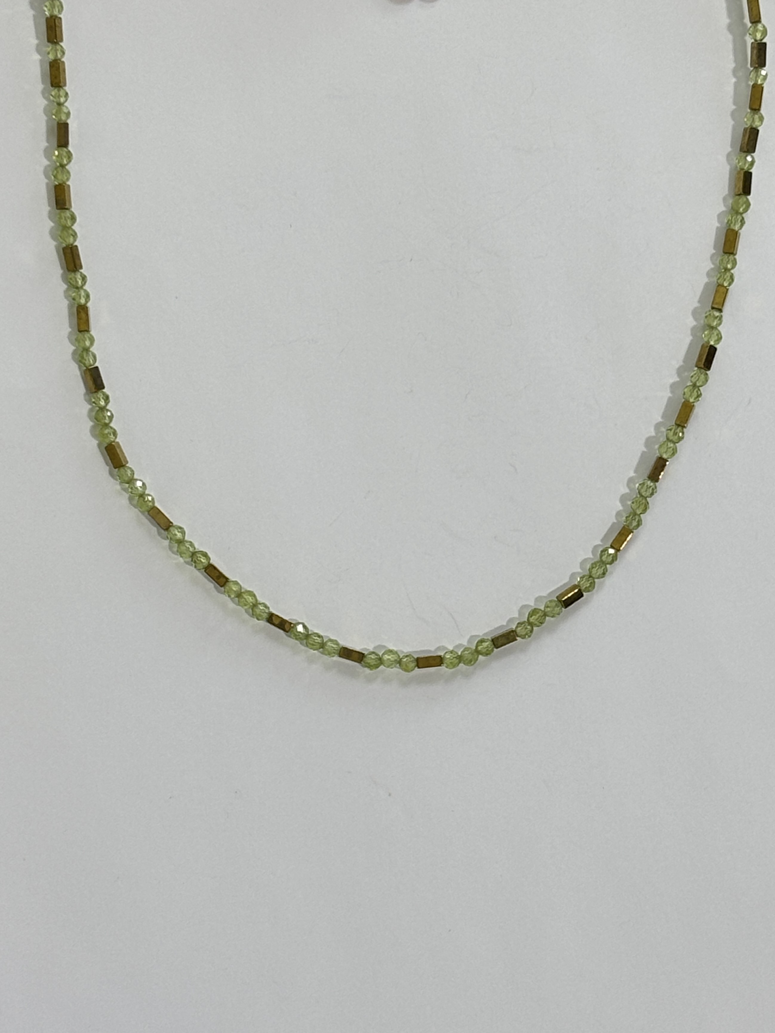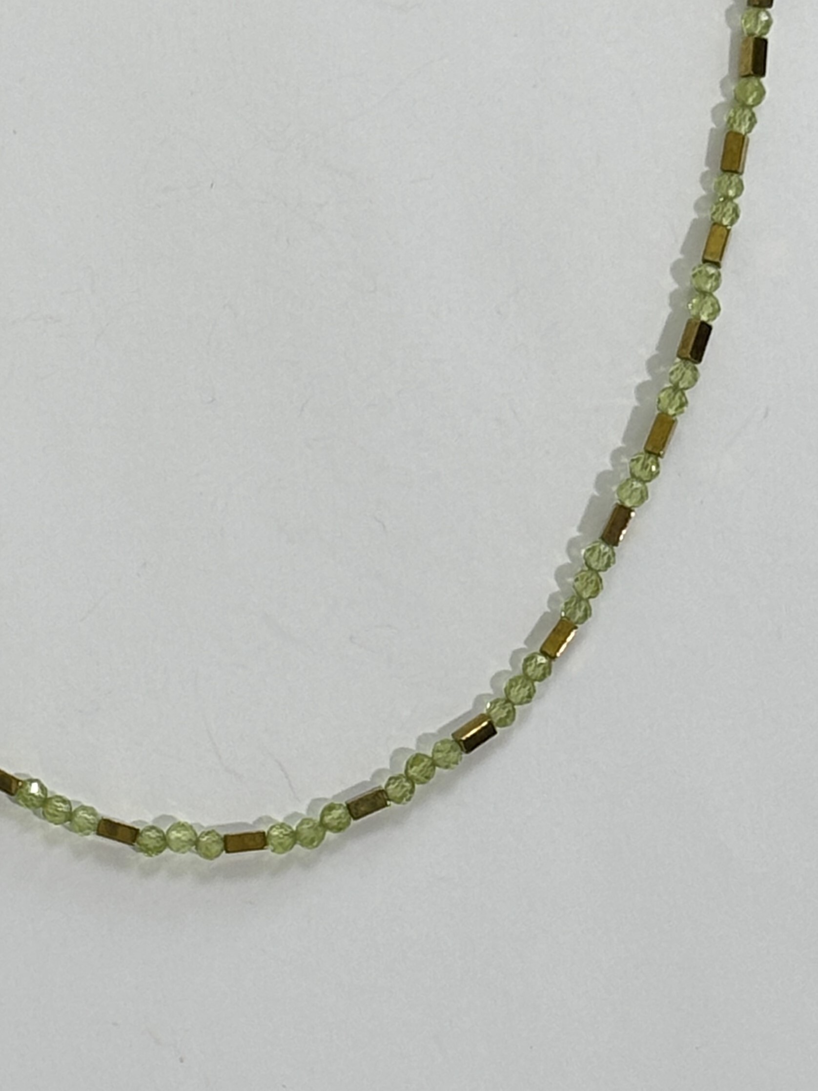 Индивидуально собранное колье из натурального Хризолита и бижутерных элементов, .