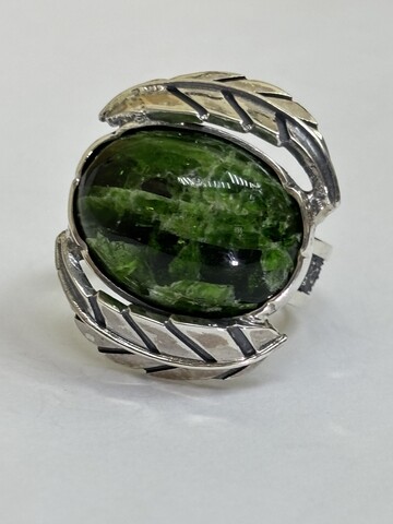 Изысканное кольцо ручной работы с натуральным хромдиопсидом.