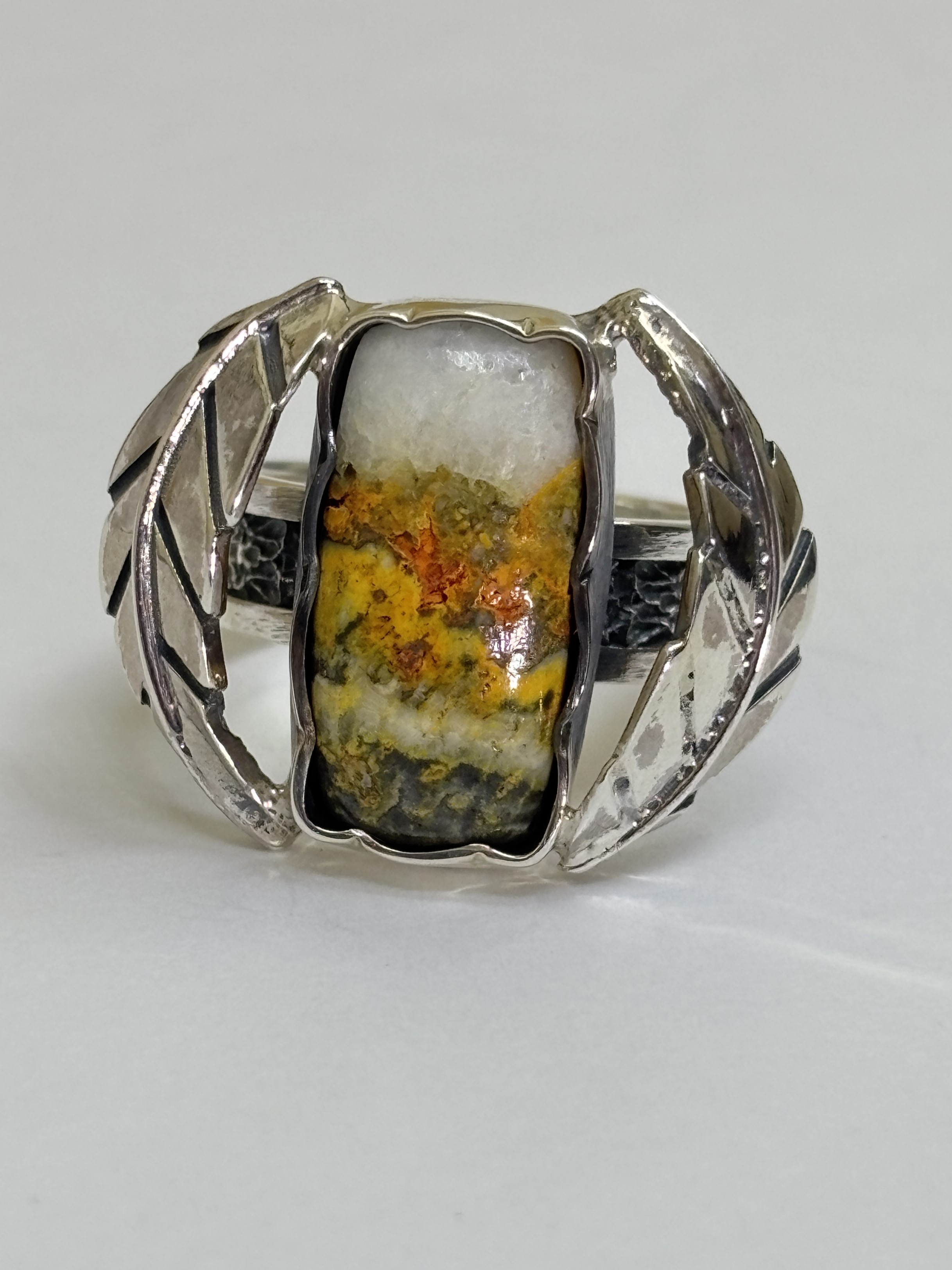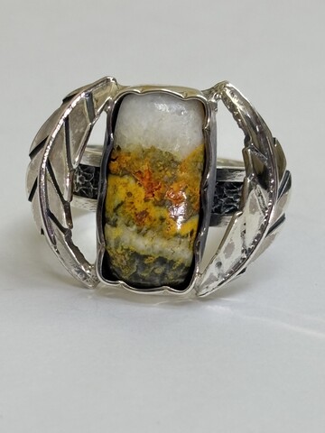 Изысканное кольцо ручной работы с натуральной пчелиной яшмой.