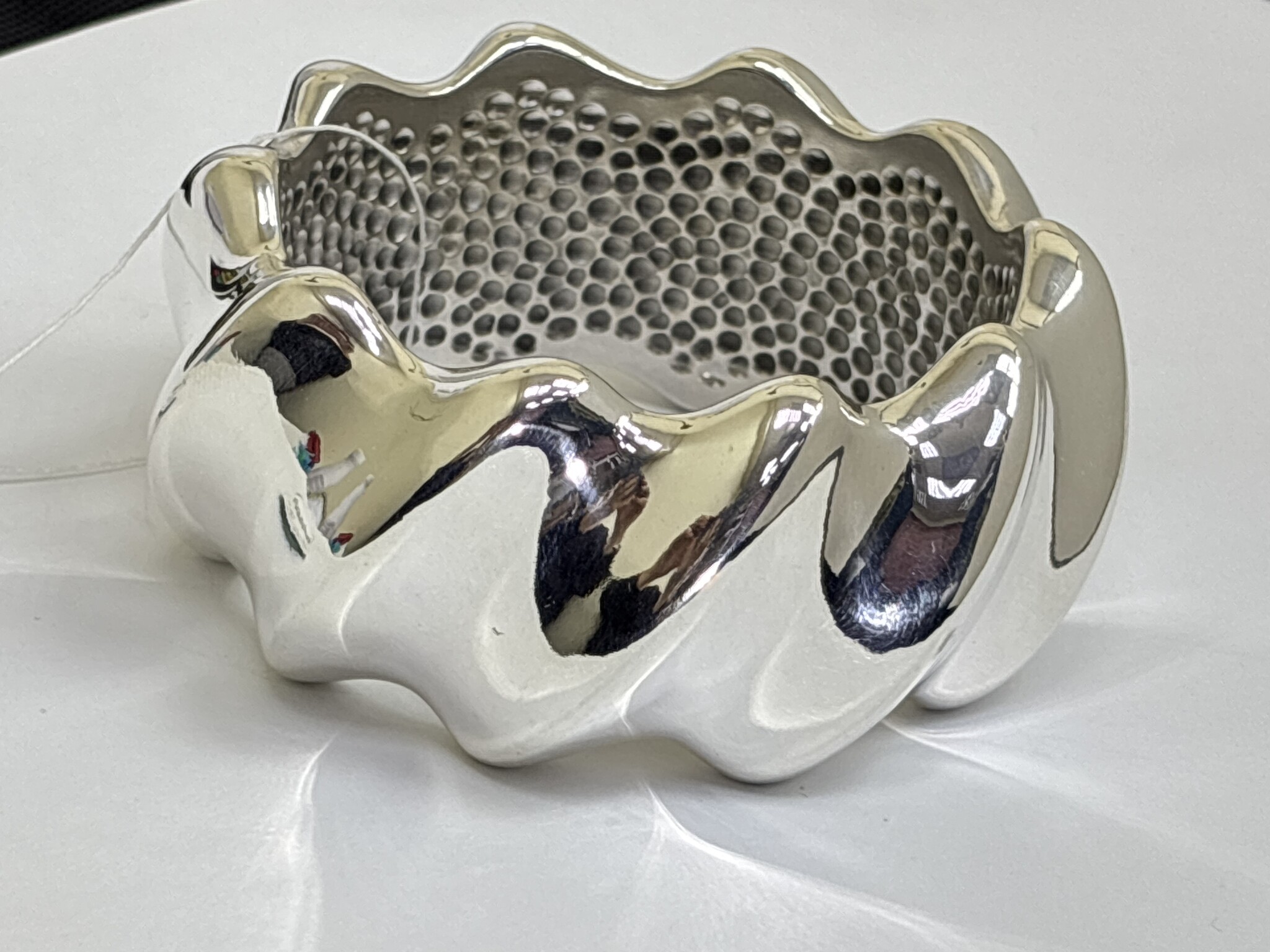 Серебряный браслет в коготками дракона и идельно гладкой поверхностью.