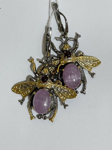 Жук-кунцит (серьги из серебра с позолотой)