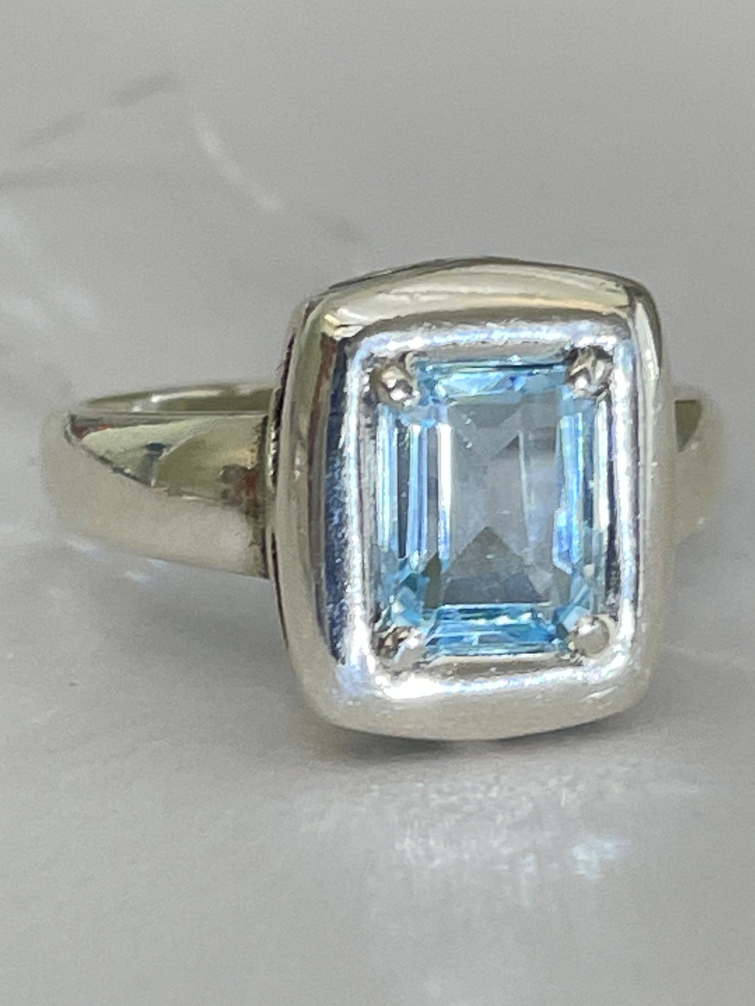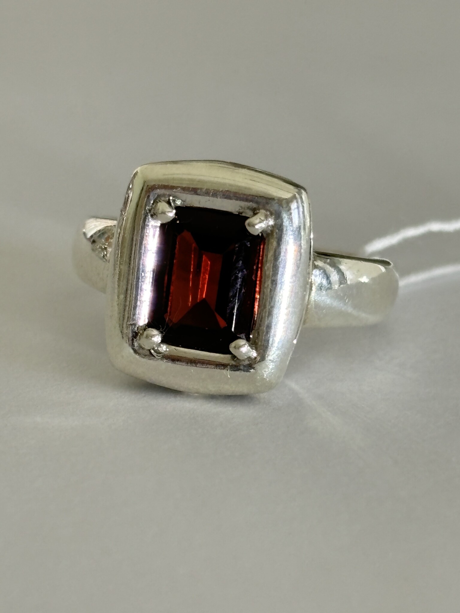 Четкий прямоугольник из серебра  с натуральным камнем огранки октагон.