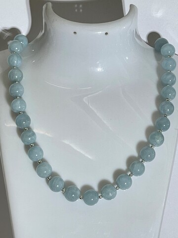 Бусы из натурального аквамарина подобраны индивидуально, с серебряным замком.
