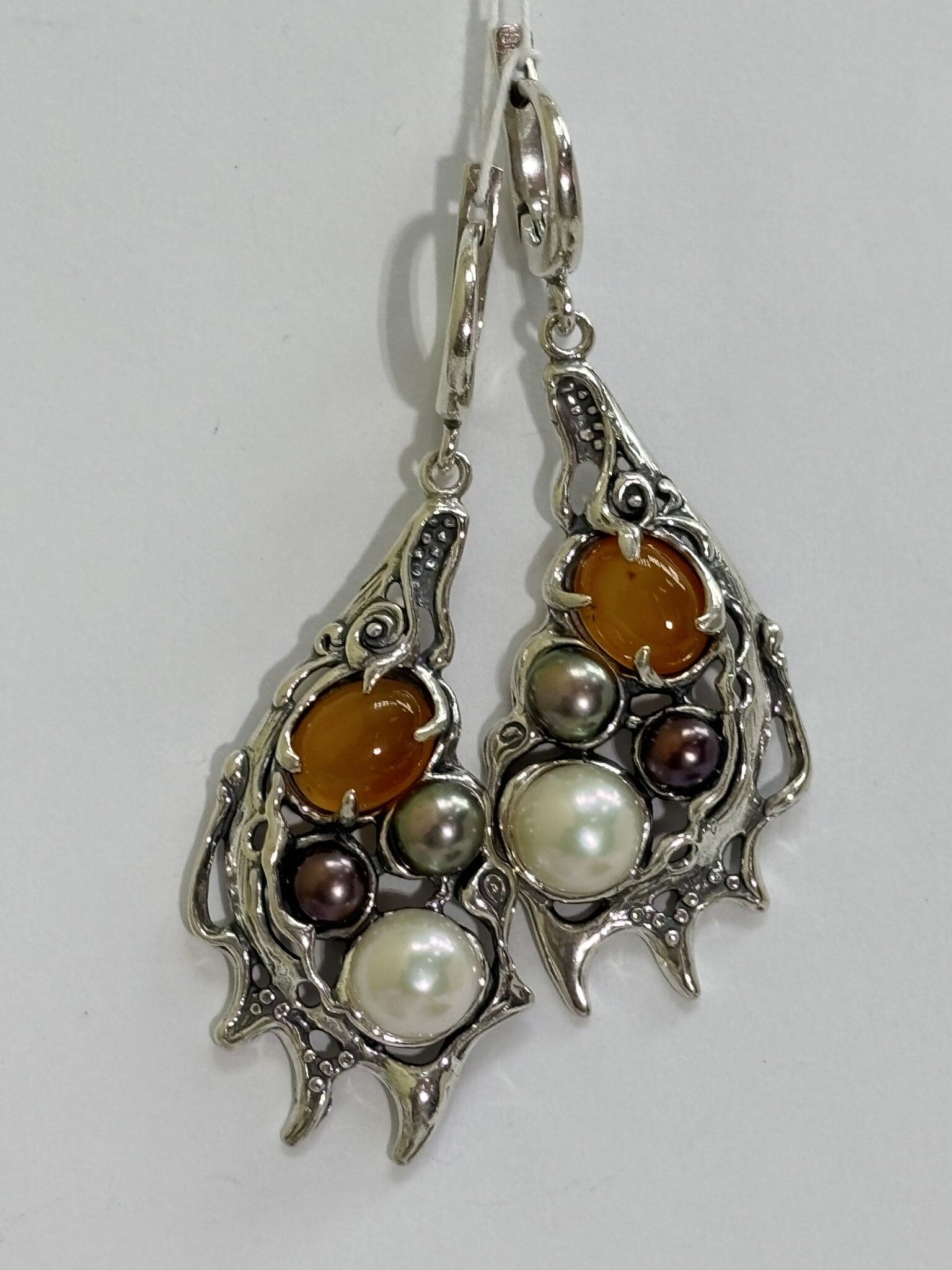 Эффектное серебро подчеркивает красоту вставок из жемчуга и натуральнызх камней.